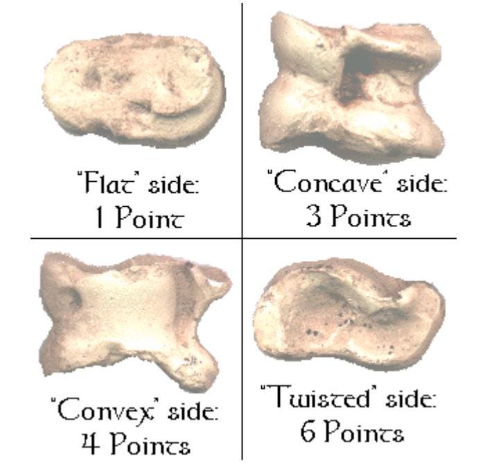 But how do you score the knucklebones? Easy! -they are used like four sided dice: