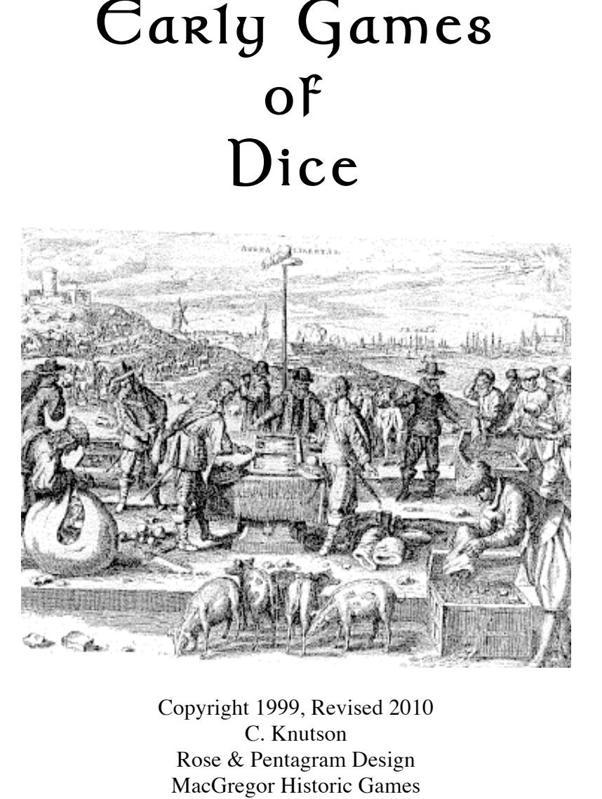 The set comes in a draw-string pouch with 5 "bones", 6 standard wooden dice, and a 20-page booklet of dice games dating prior to 1700 as well as rules for a jacks-type and an ancient form of divination using knucklebones.